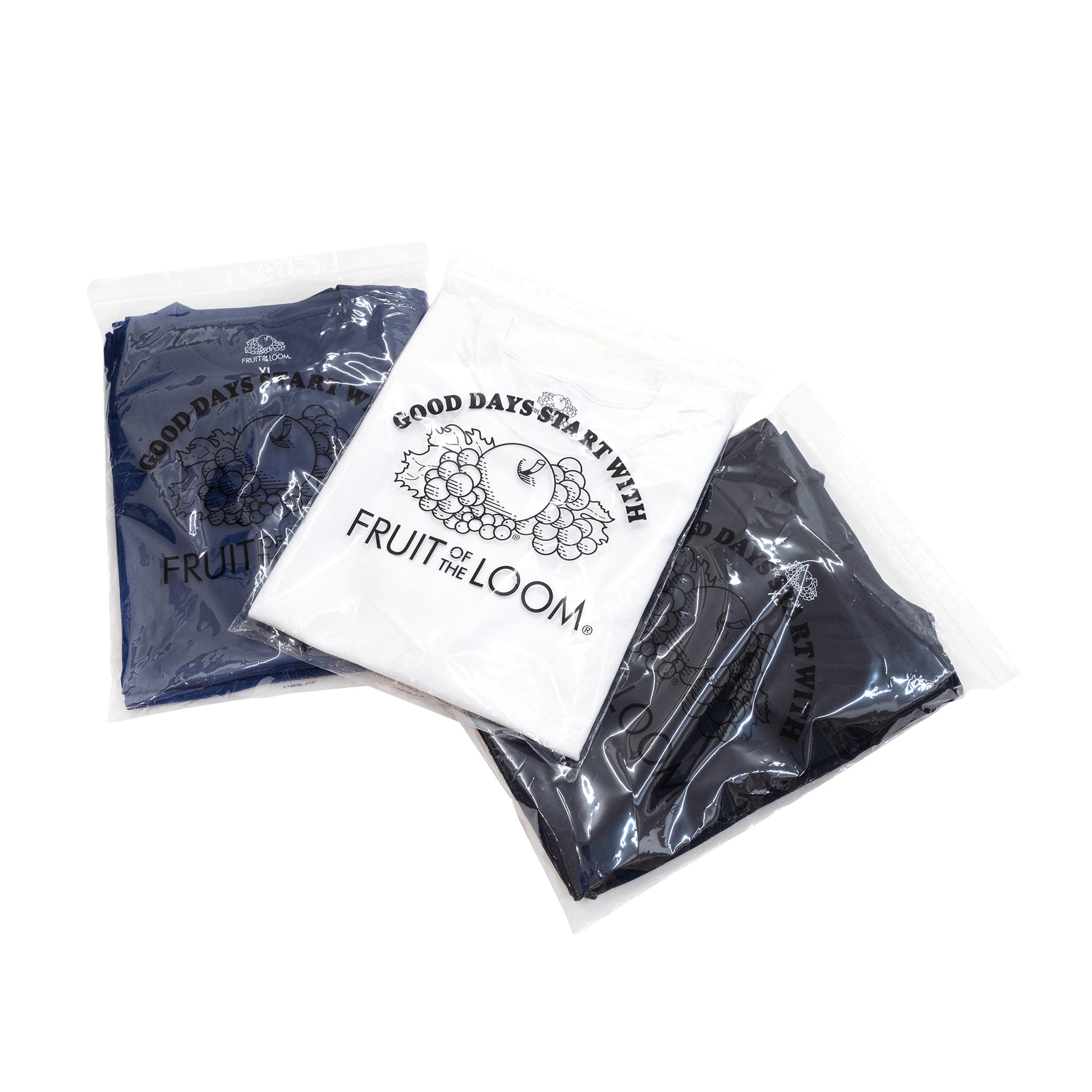 This is a 2-pack T-shirt collaboration with FRUIT OF THE LOOM. It comes in a set of 2 T-shirts in the same color. The hem is silkscreen printed.